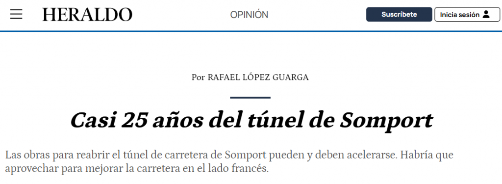 «Casi 25 años del túnel de Somport». Artículo de opinión de nuestro vicepresidente, Rafael López, en el HERALDO DE ARAGÓN