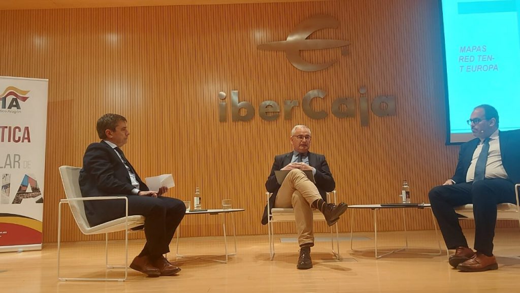 Moderamos la mesa redonda en la que por primera vez se sientan juntos el Comisionado Mediterráneo y Atlántico, en la Jornada «Nuevos Horizontes de Transporte en Aragón» en ZARAGOZA