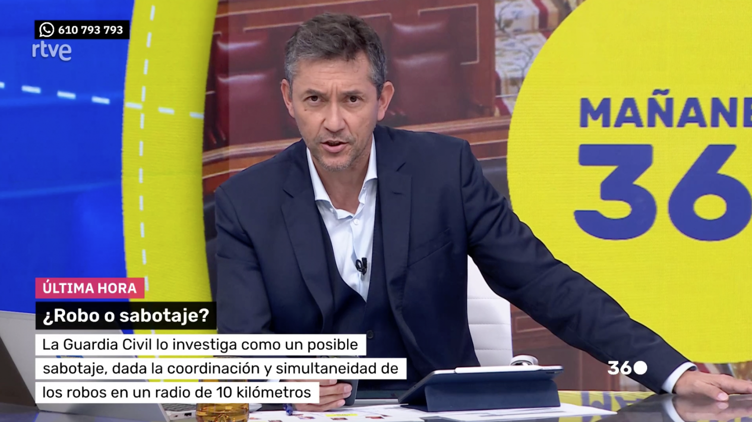 Iñaki Barrón, director técnico de la Alianza Europea Corredores.eu habla en Mañaneros 360 de TVE con Javier Ruiz sobre el robo de cable de la línea del AVE de Madrid-Sevilla.