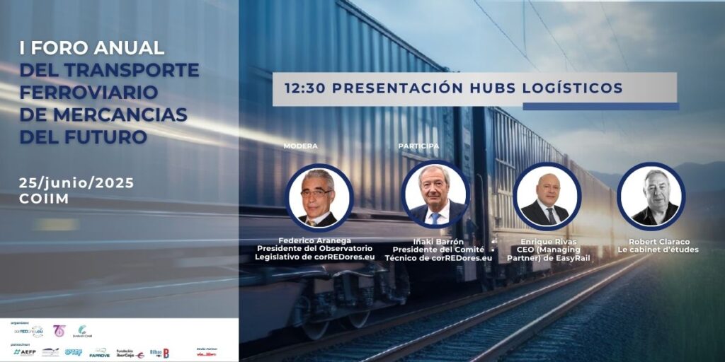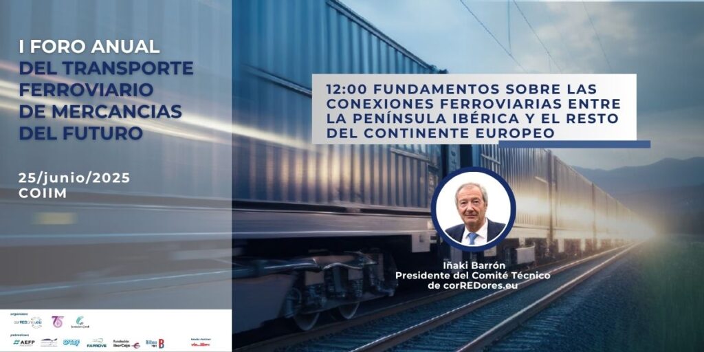 12:00 Presentación del estudio «Fundamentos sobre las conexiones ferroviarias entre la Península Ibérica y el resto del Continente Europeo» y Breve análisis del futuro del transporte ferroviario de mercancías. Iñaki Barrón, Presidente del Comité Técnico de corREDores.eu