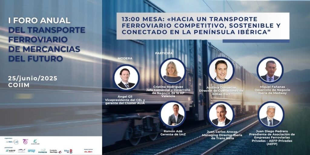 13:00 Mesa: «Hacia un Transporte Ferroviario Competitivo, Sostenible y Conectado en la Península Ibérica”. Modera Ángel Gil, Vicepresidente del CEL y Gerente del Clúster ALIA