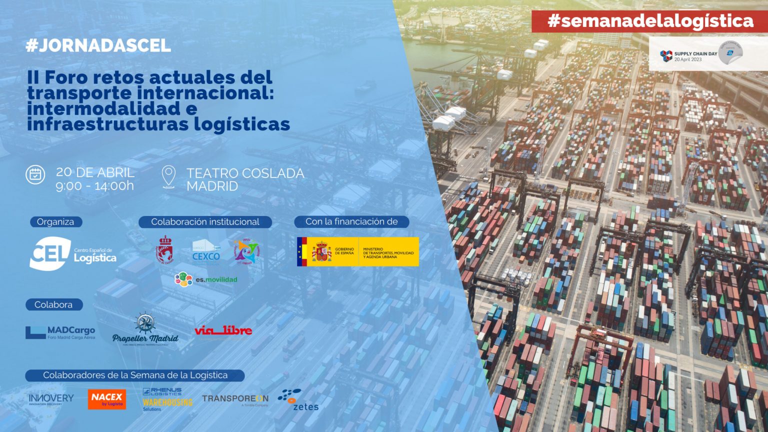 Esta mañana hemos participado en el «II Foro retos actuales del transporte internacional: intermodalidad e infraestructuras logísticas» organizado por el Centro Español de Logística (CEL) como parte de las celebraciones de la Semana Europea de la Logística.