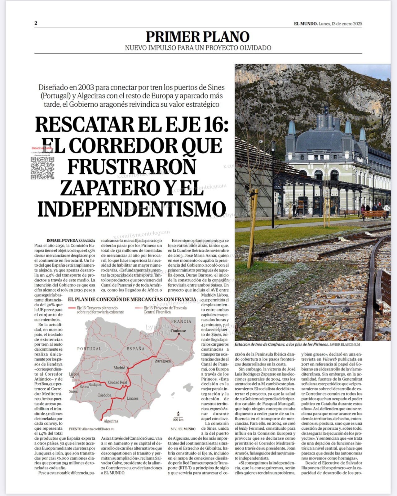 Empezamos el año opinando en el artículo «Eje 16: la vía para mercancías enterrada por Zapatero y el independentismo que mantiene aislada a Extremadura» que publica EL MUNDO, nuevo impulso para un proyecto olvidado en PRIMER PLANO.
